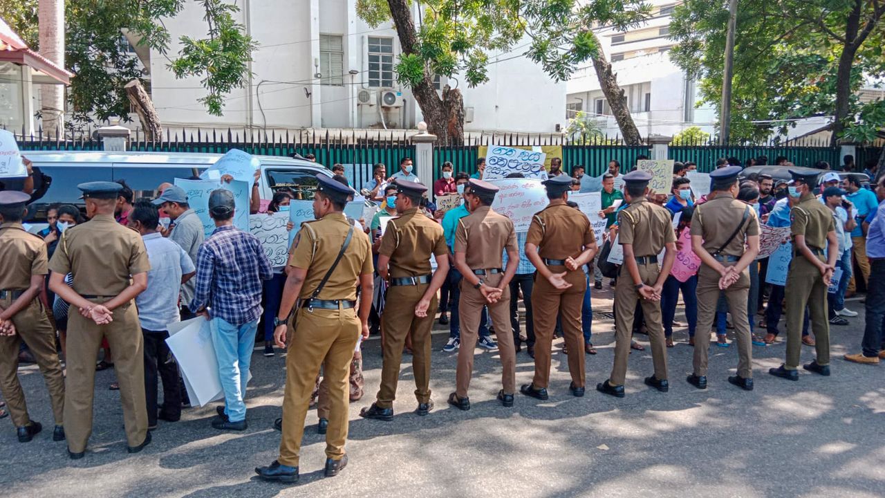 “பொலிசாருக்கும் தொழிலாளர்களுக்கும்இடையில் மோதலைத் தடுக்கவும் அரசாங்கத்துக்கு சிரமங்களைத் தவிர்க்கவும்” வேண்டுமென்றே தொழிலார்களின் எண்ணிக்கையை மட்டுப்படுத்தியே தொழிற்சங்கங்கள் கொழும்பில் உள்ள சுகாதார அமைச்சுக்கு முன்னாள் ஒரு போராட்டத்தை ஒழுங்கமைத்தன. போராட்டத்தின் போது ஒருங்கிணைந்த சுகாதார ஊழியர் தொழ்றிசங்க கூட்டமைப்பின் செயலாளர் ரோய் டி மெல், “நாம், கொழும்பில் உள்ள சகல தொழிலாளர்களையும் அணிதிரட்டும் அத்தகைய தவறான நடவடிக்கைகளை தேர்ந்தெடுக்கவில்லை” என்று அப்பட்டமாக அறிவித்தார்.